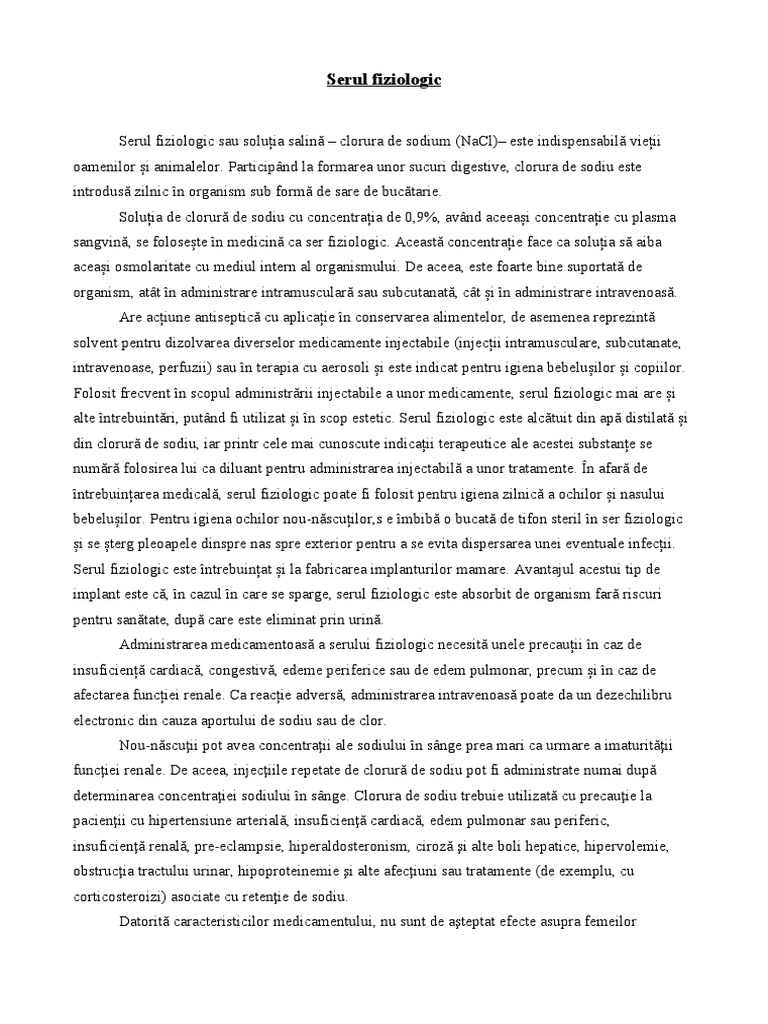 vizitati articolul complet aici : http://romaniaindirect.blogspot.com/2007/08/s-scumpit-serul-fiziologic-de-la.html Icterul fiziologic prelungit este o manifestare a icterului după o perioadă specificată, care nu se manifestă prin alte simptome patologice. Are numeroase întrebuințări benefice și este bine să ai în casă, la îndemână, o sticlă cu ser fiziologic. Ricum producatorul de ser fiziologic scrie in prospect: