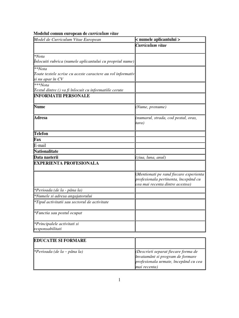 Comun descarca curriculum european model vitae. Curriculum vitae ( model pentru angajare ) nume,. Model de curriculum vitae european.