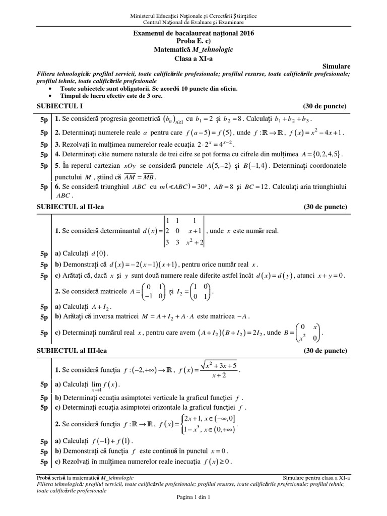 Profilul resurse, toate calificările profesionale; 0 ratings0% found this document useful (0 votes). Subiecte matematică bacalaureat 2019 tehnologic barem matematică bac 2019 tehnologic.