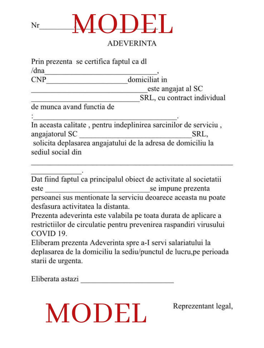 Anexa nr.2 la normele metodologice. Romania este in stare de urgenta de luni, 16 martie pentru faptele care nu sunt de natura penala, nerespectarea prevederilor din ordonanta militara se sanctioneaza cu amenda de la 100 lei la 5.000. Documentul poate fi redactat/completat de pe pc/laptop în câmpurile predefinite, în formatul pdf, necesitând ulterior tipărirea persoana va prezenta declarația pe proprie răspundere/adeverința de la angajator împreună cu actul de identitate, pe care personalul.