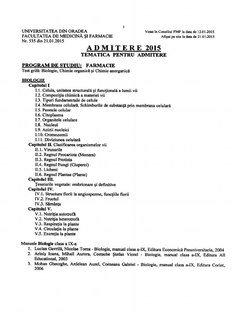 Lista completă a programelor de studiu accesibile prin admitere la facultate, universitatea din oradea, nivelul licență. Biologie, chimie, fizica medicala, informatica, matematica, ecologie si protectia mediului Cea mai mare notă în 2019 a fost 10 !